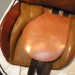 Fair condition. Swiss flocked, non gusseted panels. Suede knee pad. Pencil knee roll. Center billets.
